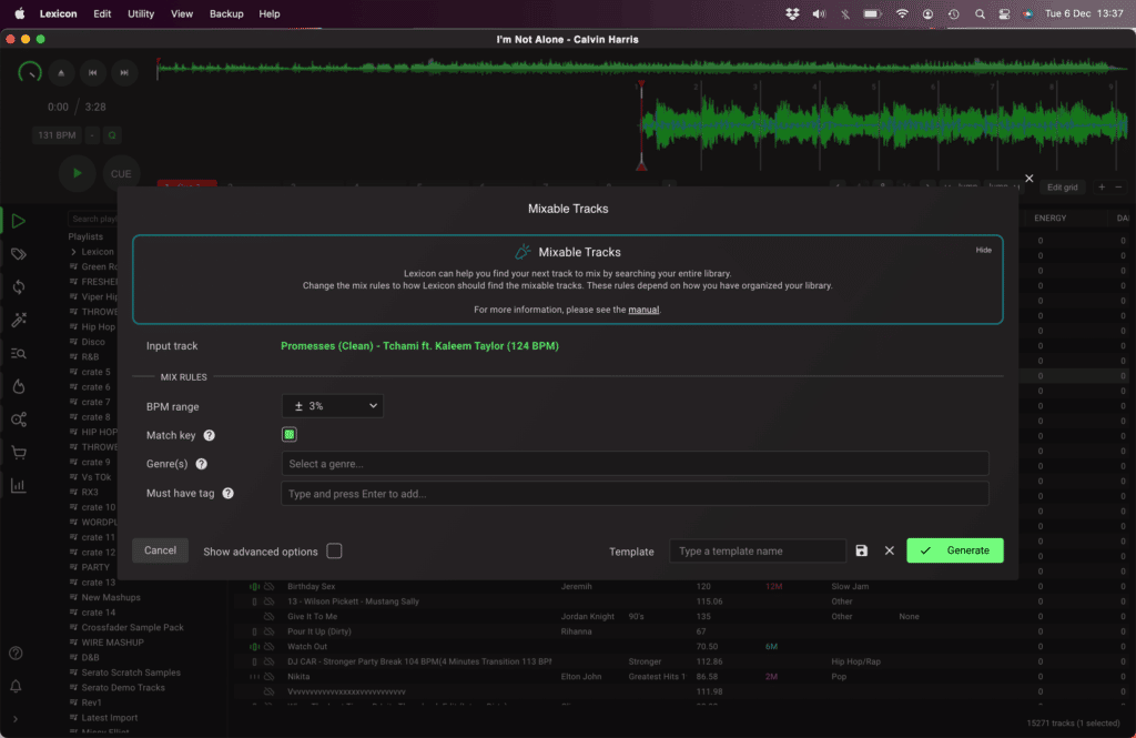 It will also give your tracks an energy and danceability rating as an exclusive field. These fields are a useful resource as they are searchable within Lexicon. They can assist in finding the right sound when building a set, such as a high danceability track search to create a peak hour playlist.