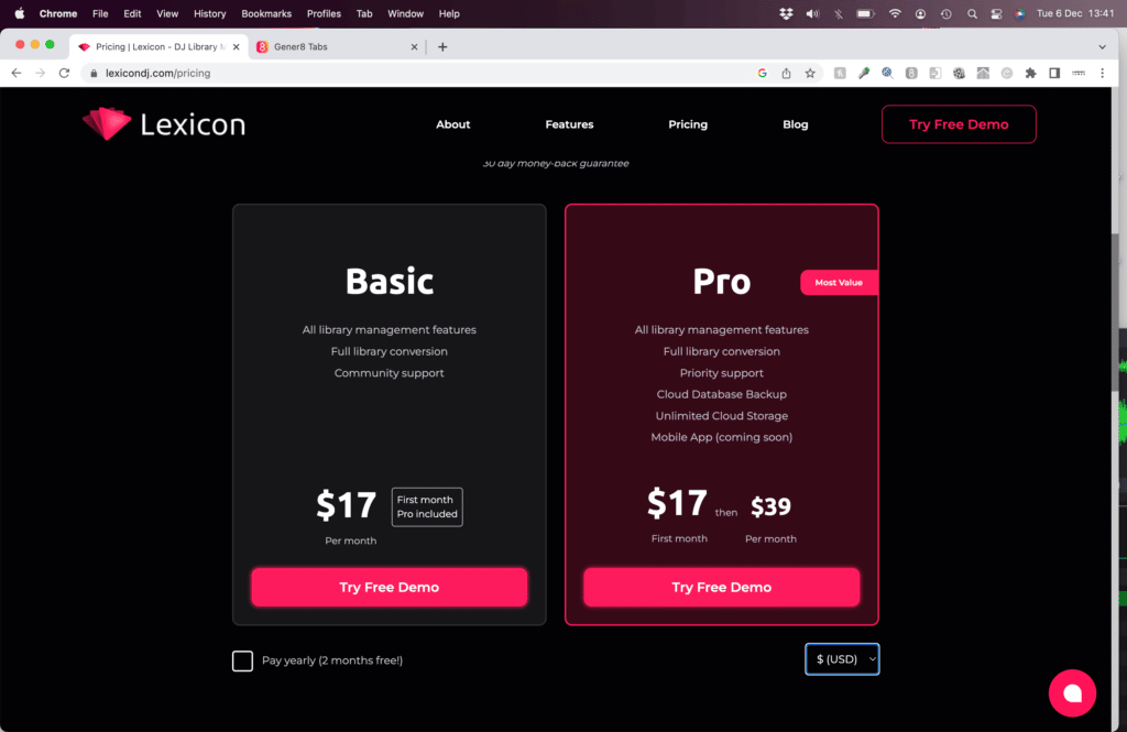 You also get unlimited music file and database backups to their cloud with the Pro plan, plus access to the mobile app, which is coming soon.