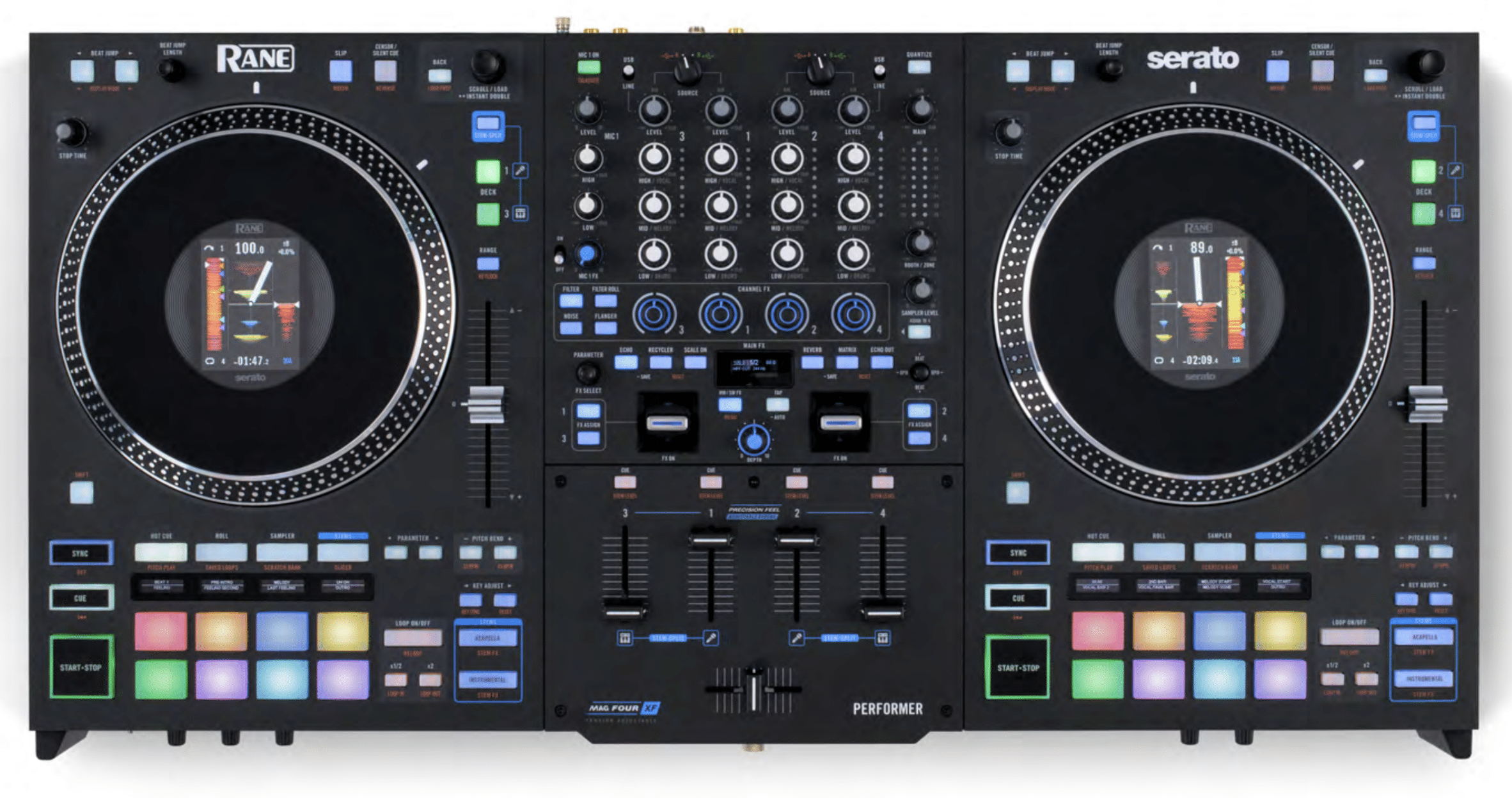 RANE FOUR was the perfect launch partner for Serato DJ 3.0. It ticked so many boxes and remains undisputed for mixing with Stems. PERFORMER perfects this formula, giving open-format DJs a true vinyl experience whilst accessing all the goodness introduced with FOUR!