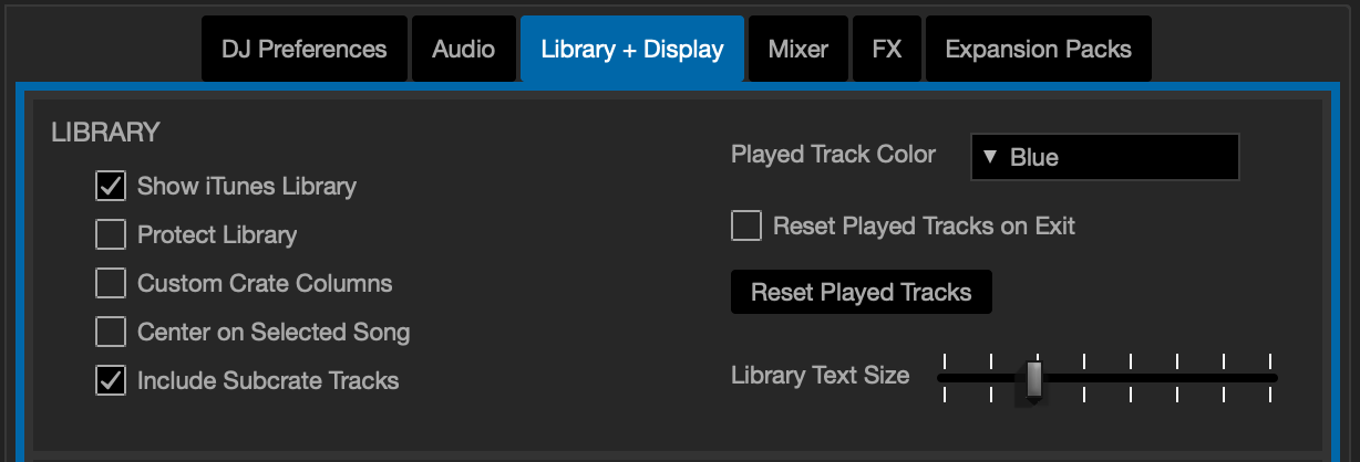 Check this option to show your iTunes library above the crates section in Serato DJ. Please note that Serato will need restarting before any changes made in your iTunes library will show, so don’t add to your playlists in iTunes whilst Serato is running.